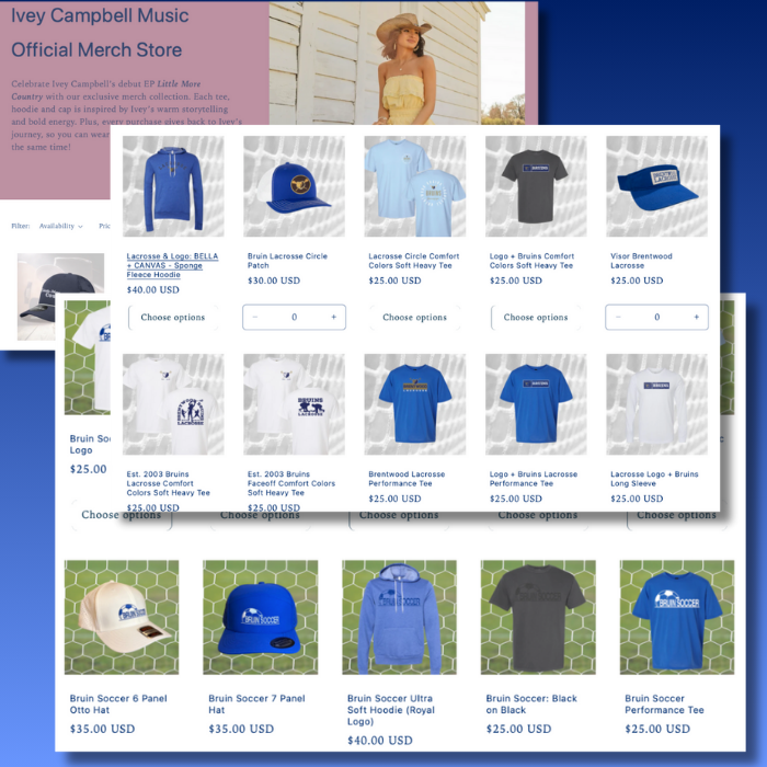 We’ve helped youth sports teams, high school boosters, and even individuals launch custom stores that run year round. No more order forms, collecting checks, or guessing sizes. We handle it all, from design to delivery and send a portion of every sale right back to support your program.